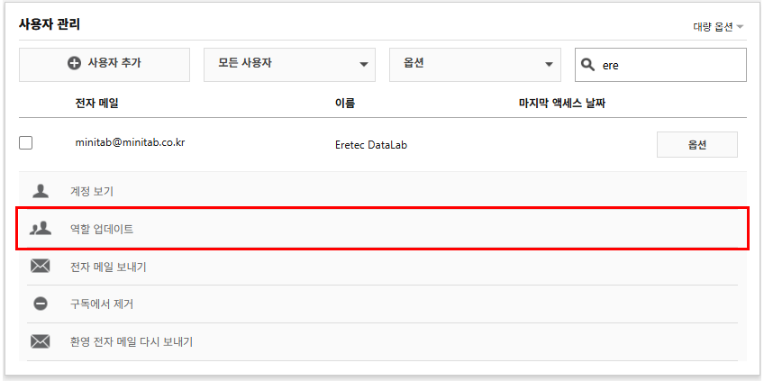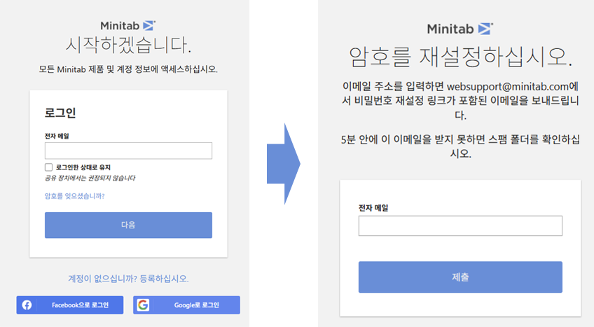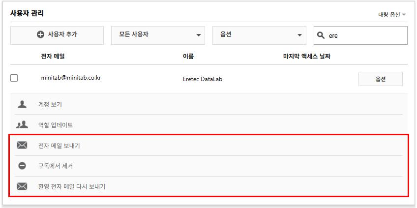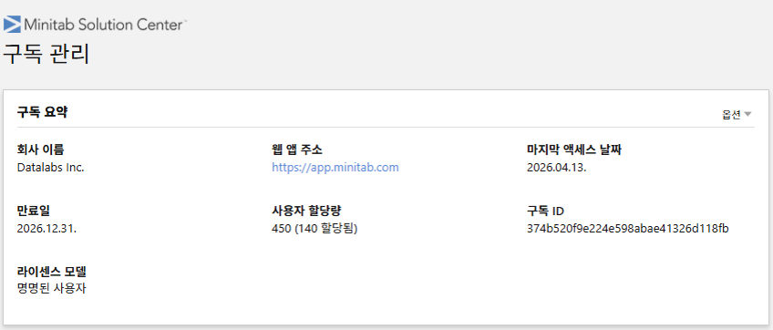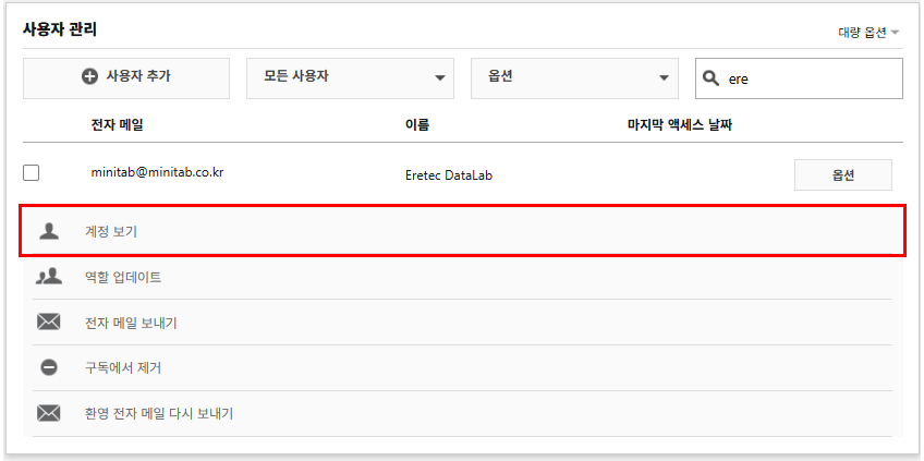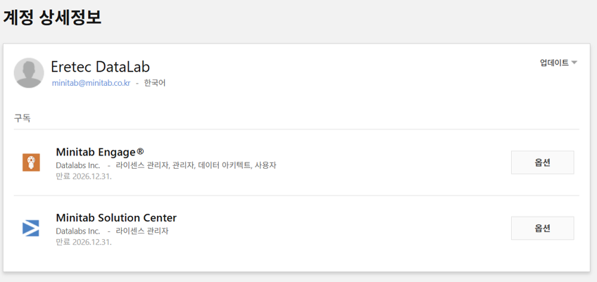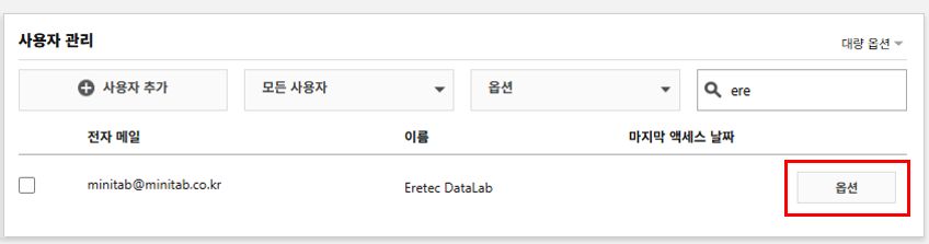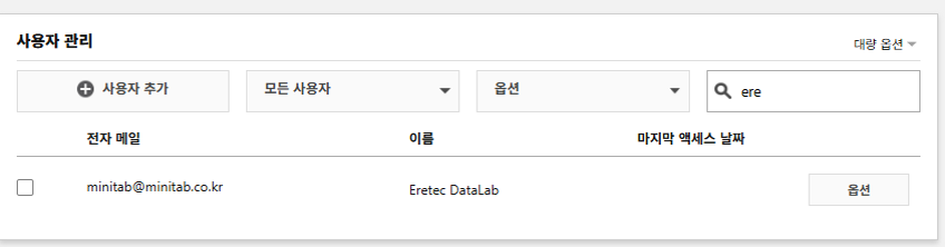 | 참고 (계정 관리 가이드 동영상) : https://www.minitab.co.kr/html/support/faq_named02.php |
